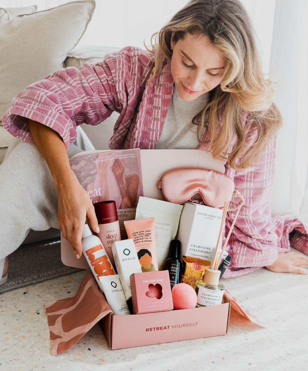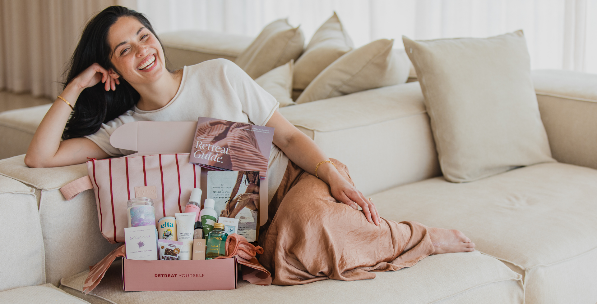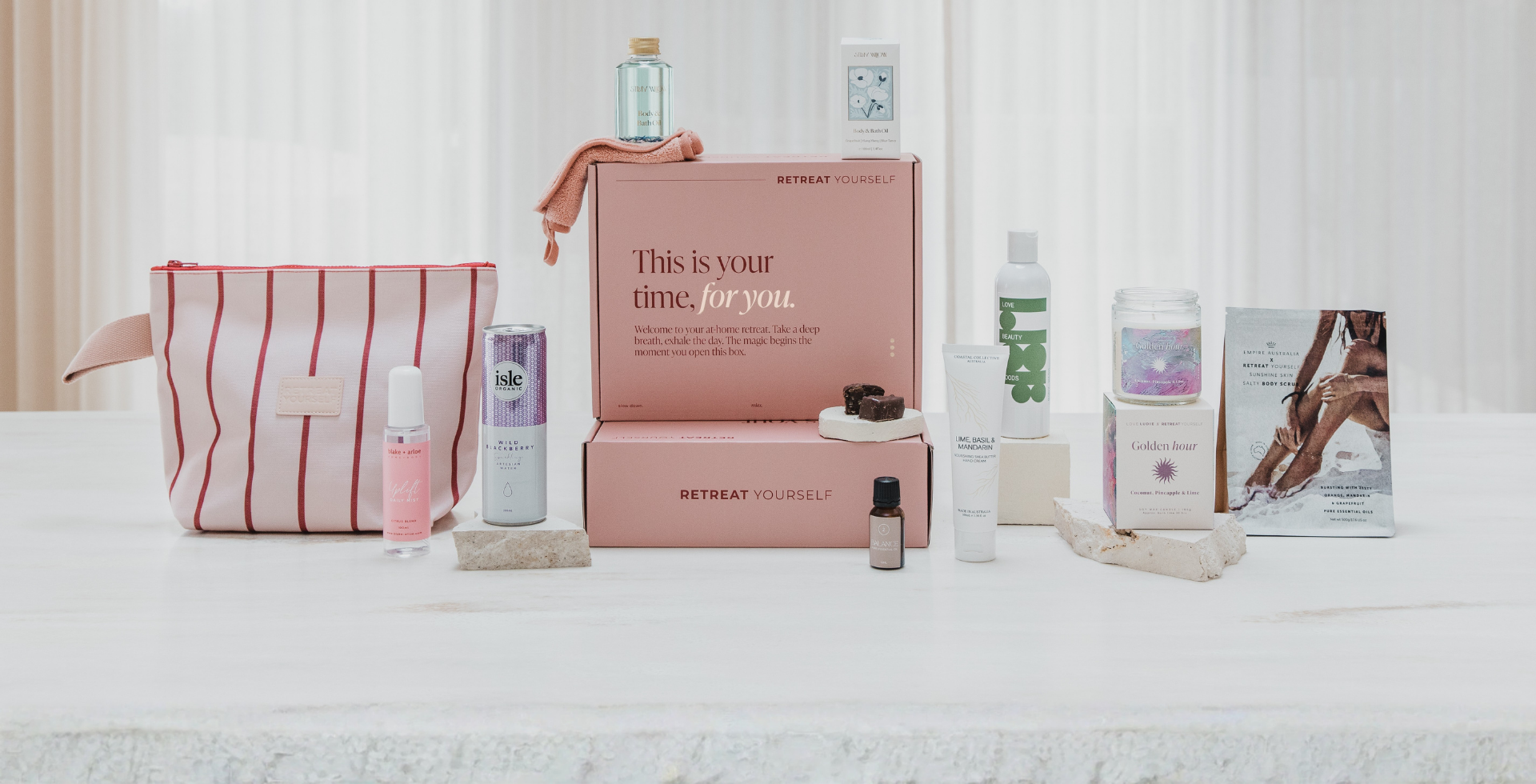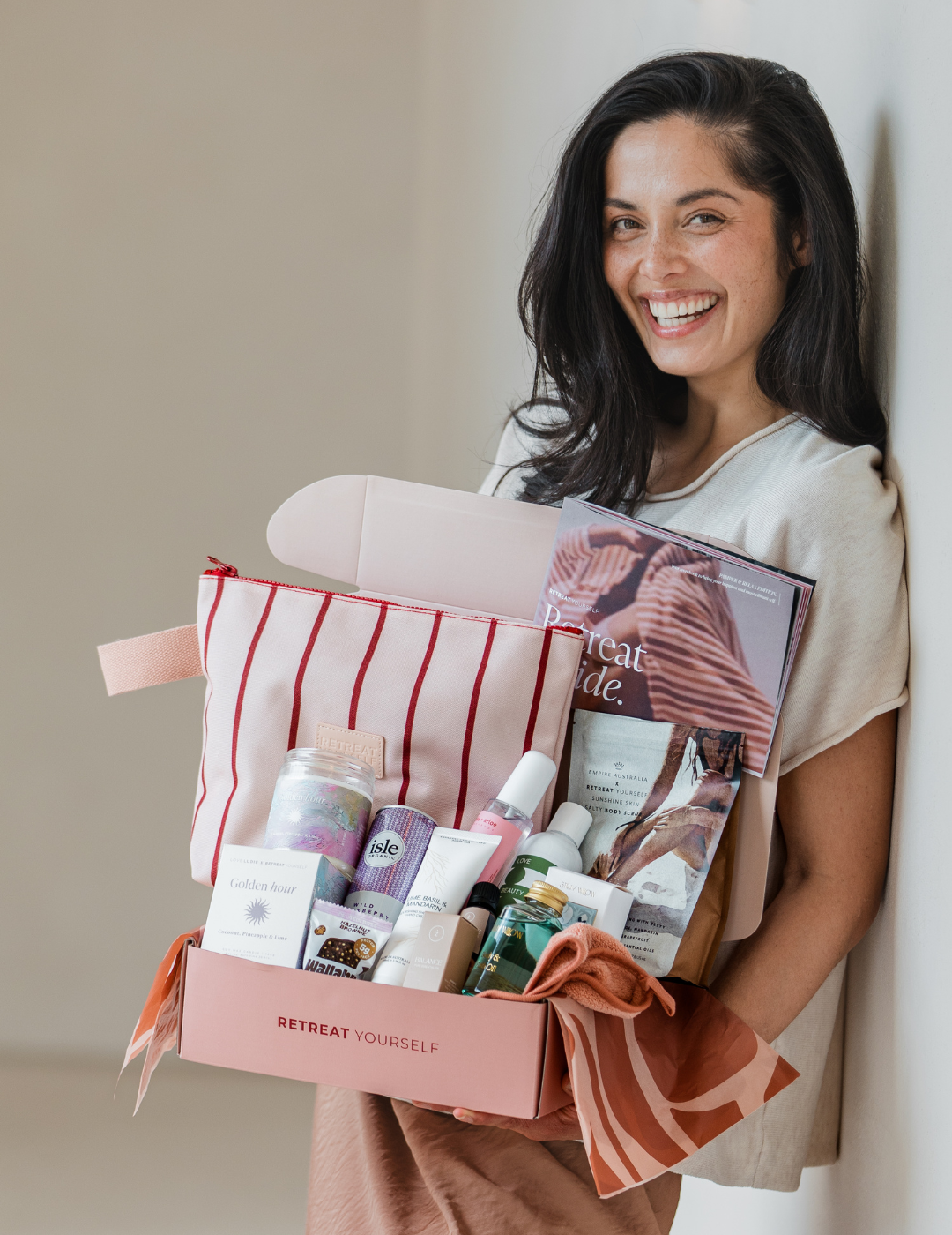 A Retreat Box is a seasonally themed box filled with up to $300 of full-sized health and wellness products from Australian and NZ-owned brands.